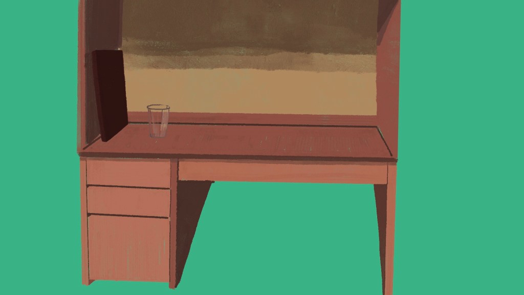 My roommates named me minimalist, and by comparison they participated in much more sane, lived-in habits (messy). They left a box of cheezits, our communal onion bag, and a third of a bottle of ketchup on the kitchen table where I needed to set up my paints. What would normally annoy me during cooking and cleaning kept me happily occupied during study, and served as my subject for that night’s homework.